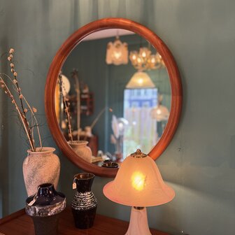 Afmetingen: Wandkast: B 65 x H 30 x D 29 cm. Spiegel: Dia 59,5 cm. Unieke set van een wandkastje en een ronde spiegel ontworpen door Kai Kristiansen voor Vildbjerg. Ideaal voor in de hal of slaapkamer. Deze set is gemaakt van massief teak hout en ontworpen in de jaren '60. Gemakkelijk op te hangen door ronde uitsparingen aan de achterzijde. Conditie: in mooie staat met hele lichte gebruikssporen.